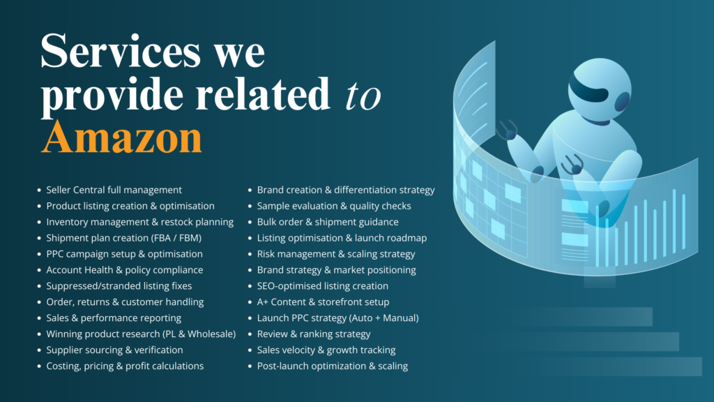 We offer practical Amazon training, end-to-end Amazon services, USA & UK 3PL fulfillment, complete business setup, and digital solutions to help you grow with confidence.